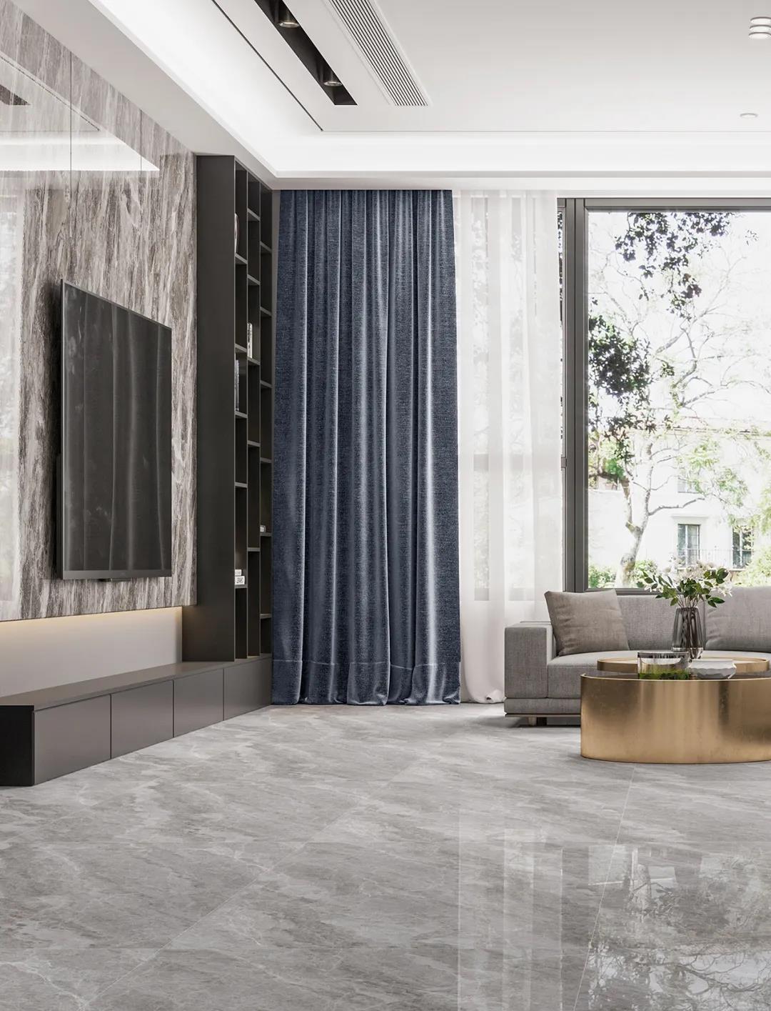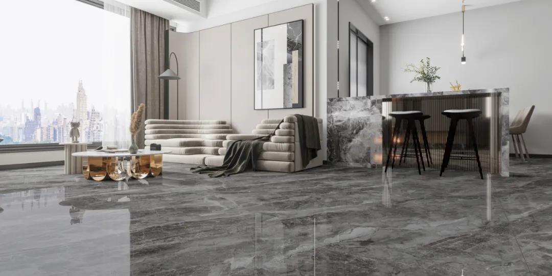 以墨之雅,以川之势,青墨川流以奔腾不息的川流之景为灵感,把流水与岩石冲击拍打成或深或浅的沟壑纵横,打造成为瓷砖表面上独特的肌理与色彩,形成强烈的视觉效果,和着深灰的品相,演绎出深邃而美的空间效果,装饰效果极为高级。