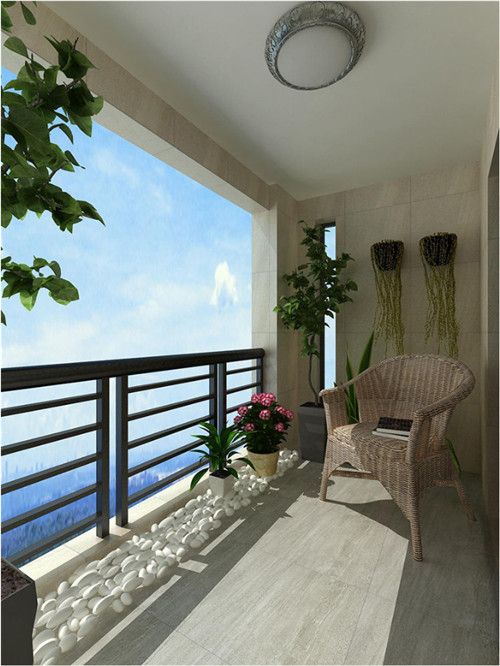 阳台的装修其实没有那么讲究,最重要的还是要清楚地知道自家阳台的承重能力。在下面的案例中我们可以看到它的空间并不是很大,不过整体的布局却是颇为美观。在阳台下面铺了一层鹅卵石,种下一些绿植,碧海蓝天,冬天中午在阳光下摇椅里小憩片刻,那就是生活。