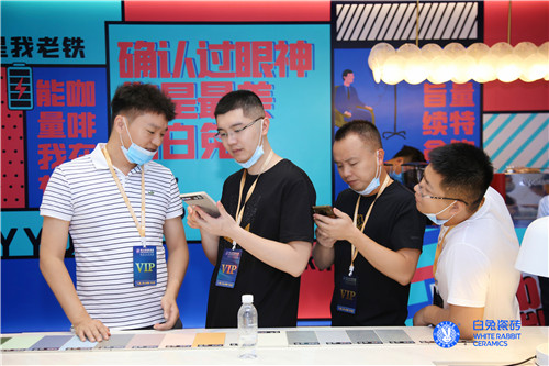 在浓郁的咖啡香气和耳目一新的“能量兔”中,白兔瓷砖以“高颜值”、“有个性”的创意,大胆“撩”起了现场参观者的热情关注,目之所及,人来人往,络绎不绝,俨然成为本届潭洲展新晋人气打卡点。