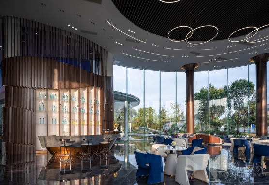 演讲语录:“海上湾在上海是朱家角的一个区域,属于徽派建筑,白墙青瓦,室内也想延续这个感觉。家装跟工装有一些区别,家装以业主需求为主,工装更多是迎合大众,有一个整体的效果。”
