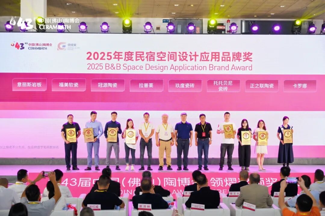 颁奖典礼上,依次揭晓并颁发了【领熠奖-2025年度陶瓷行业领军品牌奖】、【领熠奖-2025年度杰出品牌奖】、【领熠奖-2025年度品类冠军奖】、【领熠奖-2025年度原创品牌奖】、【领熠奖-2025年度人气品牌奖】、【领熠奖-2025年度酒店空间设计应用品牌奖】及【领熠奖-2025年度民宿空间设计应用品牌奖】七个细分奖项。