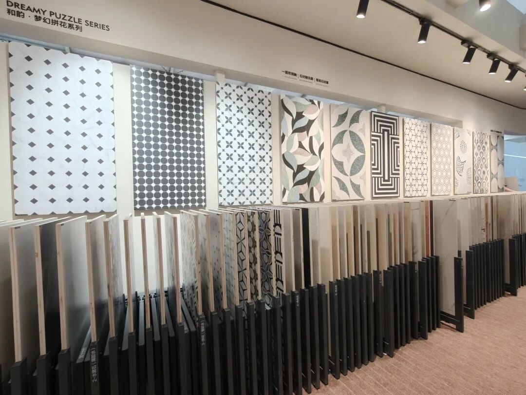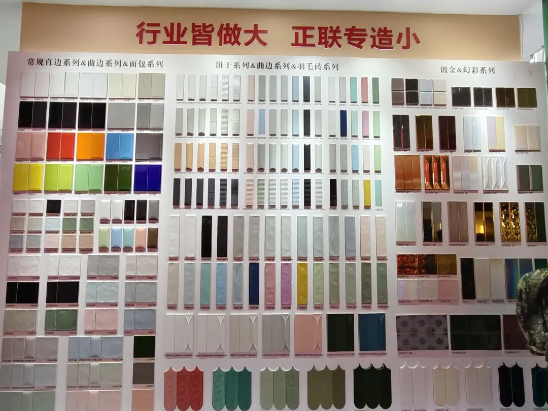 正之联展示了花砖系列、幸运花系列、古韵系列、渐变系列、马拉兹系列、纯色系列、洞石系列等多种款式的瓷片和马赛克瓷砖等,涵盖多种规格及3D凹凸面、电镀曲边等工艺的产品,从50×200mm迷你砖到900×1800mm大板,品类十分丰富且具有特色。