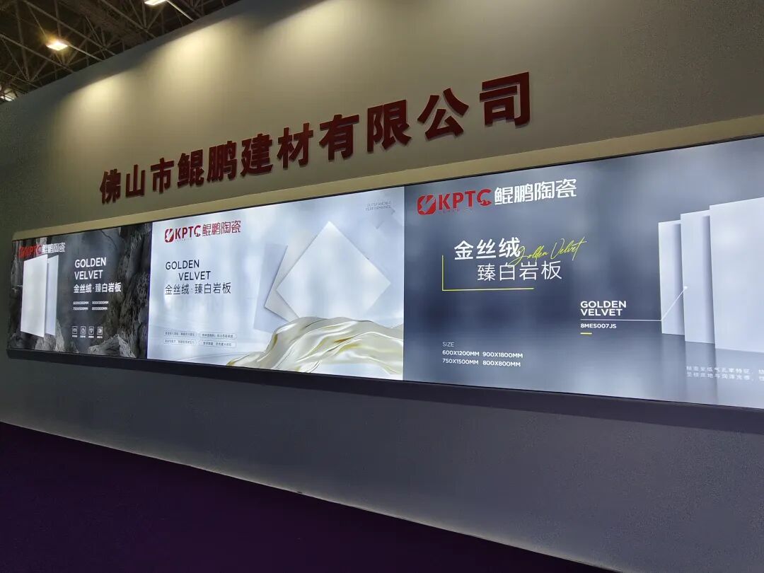 鲲鹏重磅带来了金丝绒•臻白岩板、超白坯系列和奢石系列新品以及其他拳头产品,涵盖800×800mm、750×1500mm等众多规格。