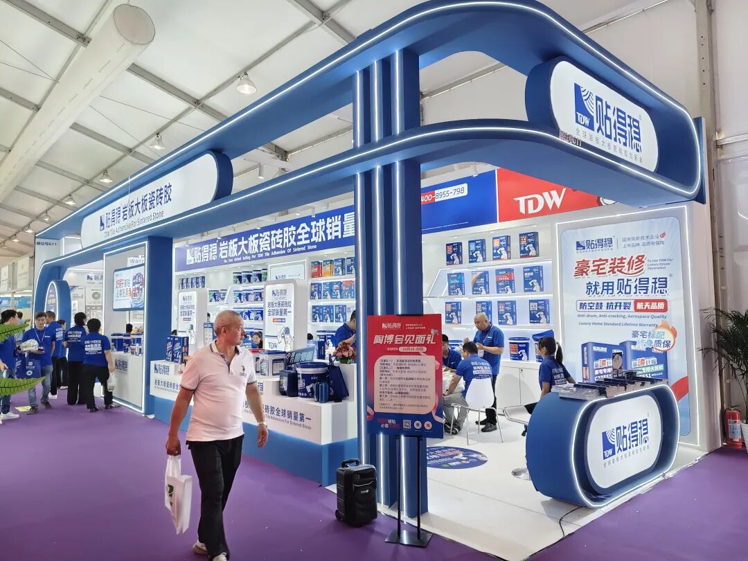 贴得稳在G11展位带来了瓷砖贴地宝、全效瓷砖背胶、全能型铺装粘贴密封结构胶等岩板大板瓷砖胶等产品,这些产品专注解决岩板大板粘贴难题。