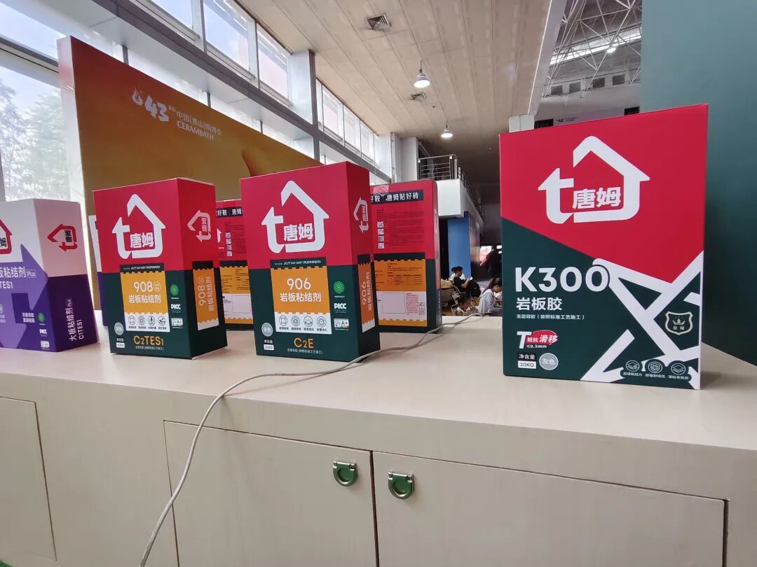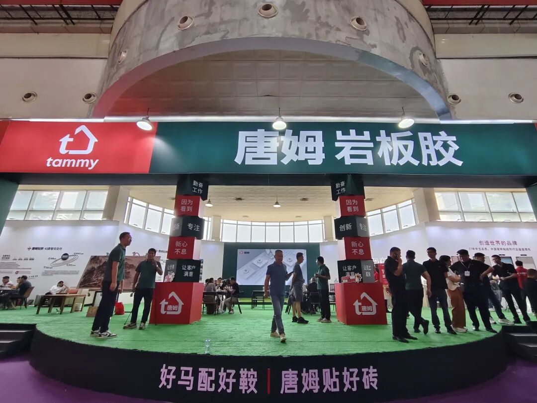 唐姆在E168展位特设了实景演示区,联合各行业头部品牌,现场展现规范化、标准化的岩板粘贴技术,让观众直观感受唐姆产品的实际应用效果,助力岩板/瓷砖铺贴技术的推广,直观呈现“好辅材+好工艺=完美交付”的一体化解决方案。