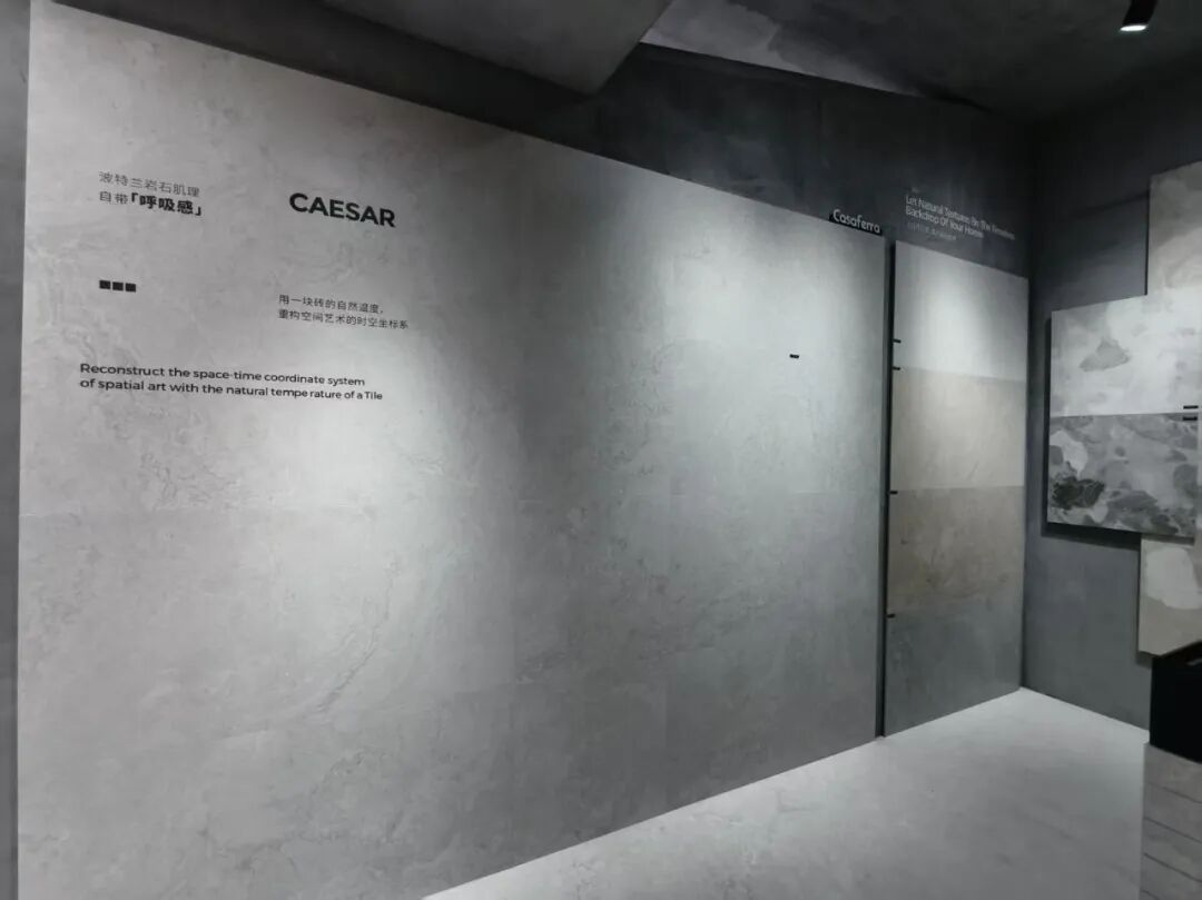 在展位核心区,荔枝面全通体、榫卯结构石英砖、庭院砖、老石板系列集体亮相,针对不同空间需求。