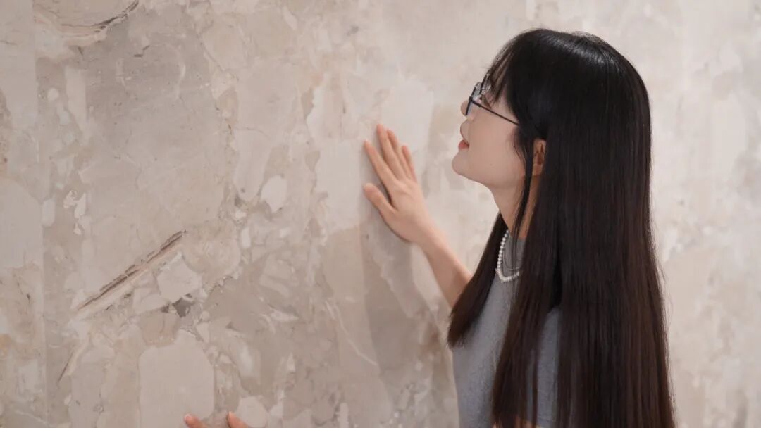 与传统瓷砖冰冷、硬的触感不同,天韵石呈现出一种温润蜡质感,据悉,这源于KMY创新的凝润蜡脂面工艺通过蜡抛与蜡质釉双重复合呈现出独特的视觉及触感特性。