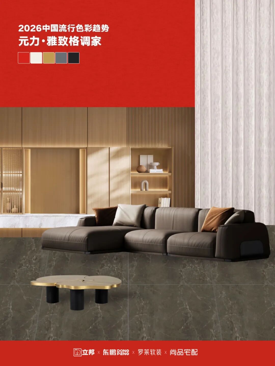 当家居行业的趋势发布从“独白”走向“共鸣”,一场由东鹏深度参与的产业协同变革正在发生。近日,东鹏携手立邦、罗莱软装、尚品宅配联合发布《2026中国流行色彩趋势》,以“元力红”为纽带,首次打破单一品类界限,构建起贯通墙面、地面、家具、软装的色彩协同生态。