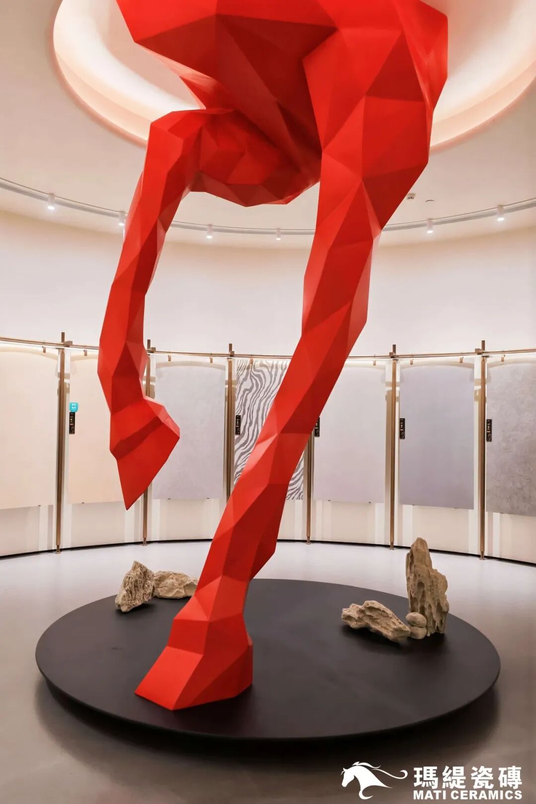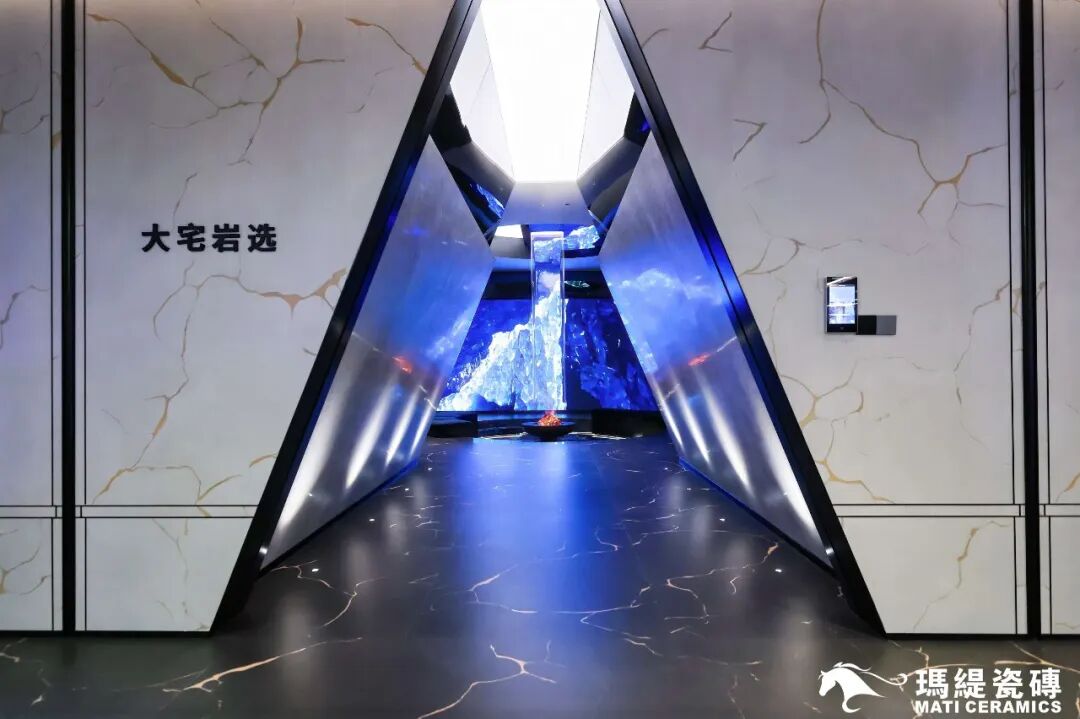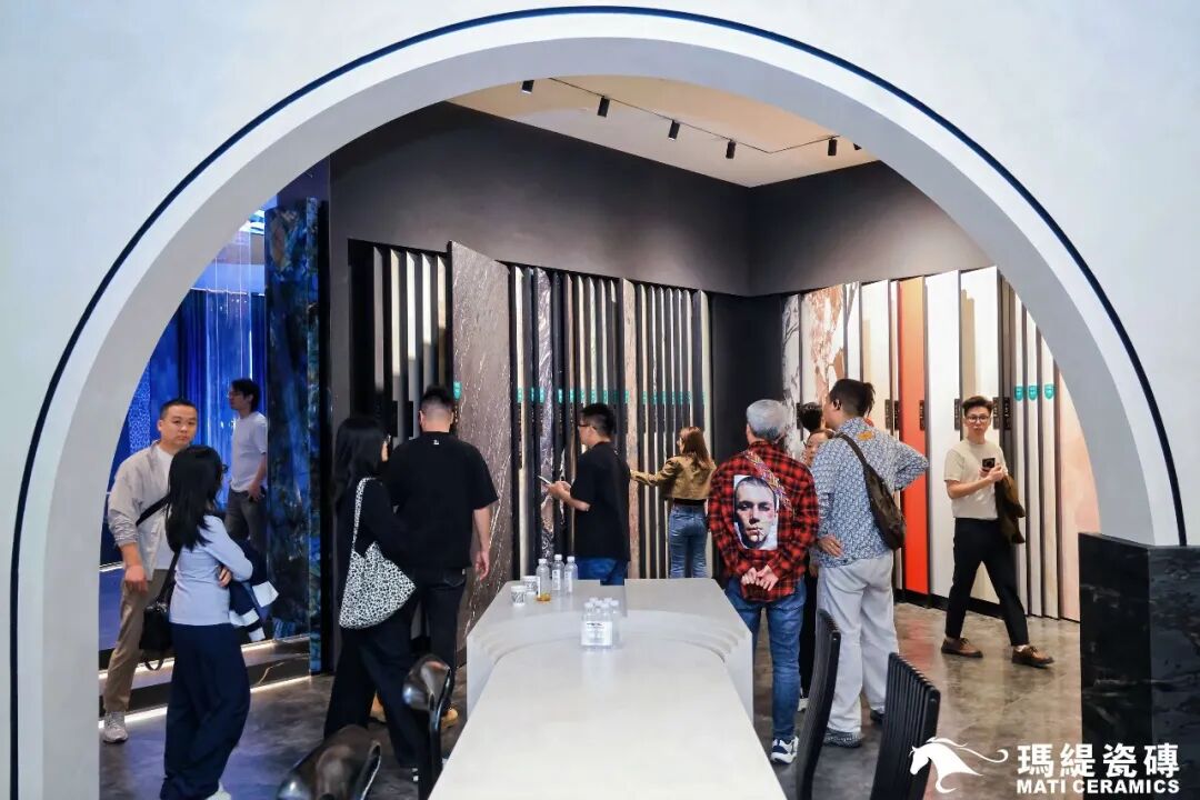 而新品岩板展厅则化身为一处“小剧场”,通过沉浸式光影与艺术化场景,赋予岩板生命,使其成为“会讲故事”的艺术品。这些空间不仅止于产品陈列,更是玛缇对“空间美学语言”的一次重塑,为在场设计师带来了充沛的灵感启迪。