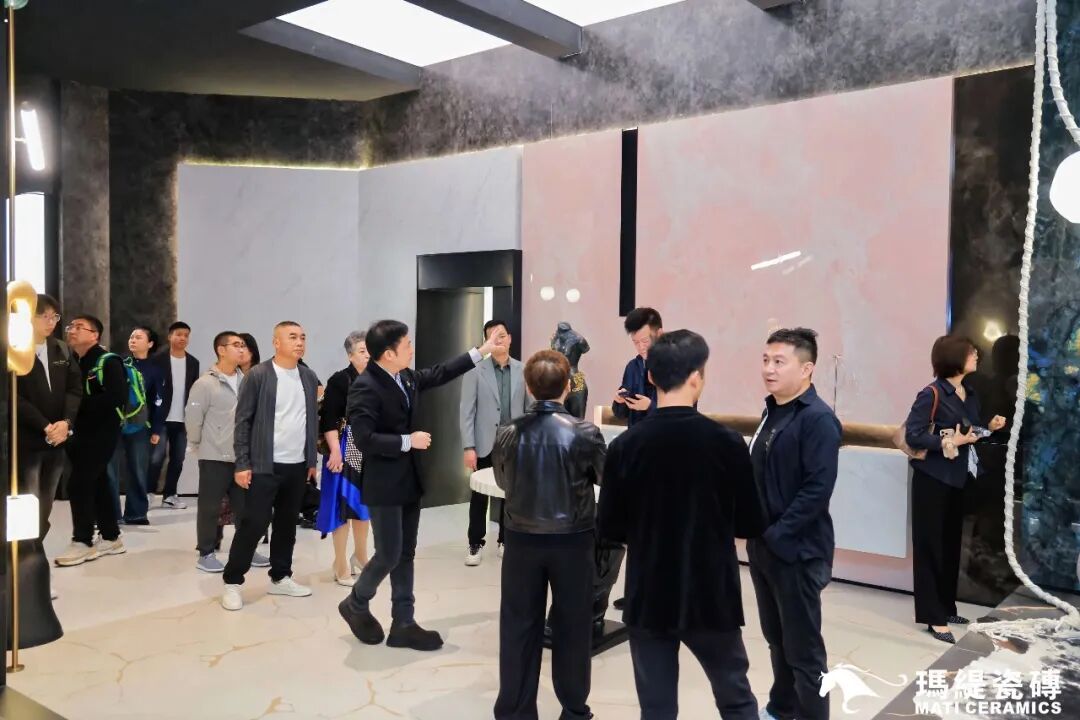 活动的最后,设计师们在工作人员的引导下,深入参观了玛缇总部展厅。从艺术画廊般的选材区到剧场感十足的岩板展厅,亲身触摸、感知产品在空间中的生命力,体验了一场从视觉到心灵的美学巡礼。