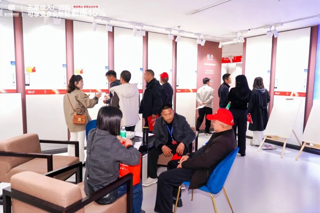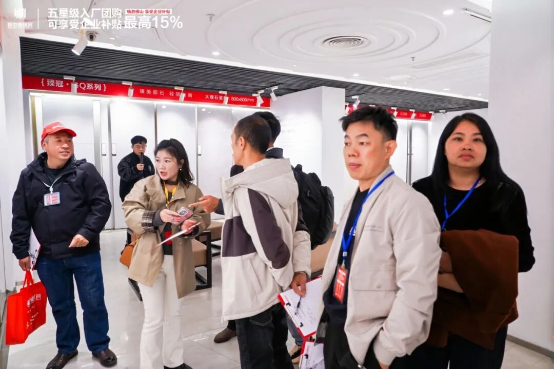 总部展厅现场,新中源陶瓷终端赋能部经理邓小杰及其团队为业主详细解读本次入厂团购的专属优惠政策及签约权益。厂家直供的诚意底价点燃了现场业主的热情,互动氛围热烈高涨。