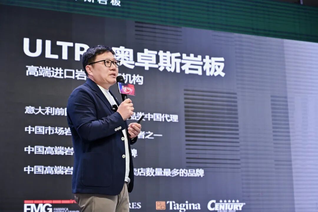 奥卓斯岩板总经理于洪宝以《专业领航 模式致胜——奥卓斯的品牌化建设之路》为题,分享了在行业调整期如何逆势而上的实战经验。