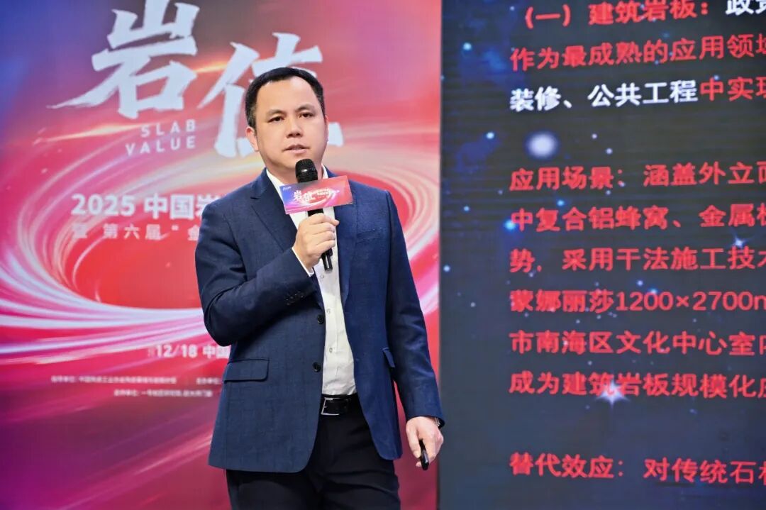 中国陶瓷工业协会陶瓷幕墙与岩板分会秘书长刘一军首先登台致辞。他从行业高度出发,指出“岩值”不仅是对岩板产品和服务价值的不懈追问,更是对行业如何在高质量发展蓝图中找准定位、构建可持续竞争力的战略考量。