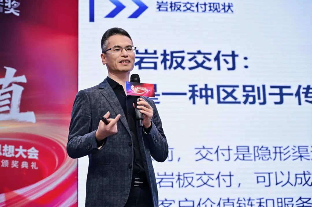 总经理刘石在致辞中则从平台角度阐述了“岩值”的深层含义。他表示,“岩值”叩问的是,在行业穿越周期、迈向高质量发展的今天,岩板人究竟在为何种价值而创造和坚守。
