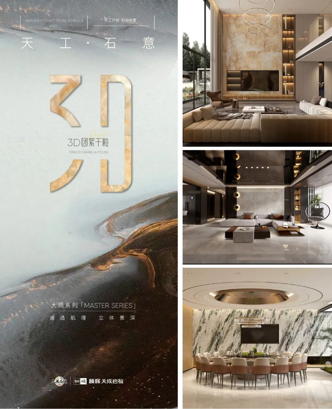 产品差异化、特色化是市场制胜的关键。此次在金岩奖颁奖盛典上荣获“年度岩板产品金奖”的《大师系列》,是顺辉天成岩板于2025年11月重磅推出的战略新品。