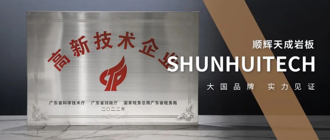 在短短几年的发展时间里,顺辉天成岩板相继通过了高新技术企业、专精特新中小企业NSF食品级认证、UL绿色卫士金级认证、GQM能量管理体系认证、SGS检测认证等,为产品研发与生产提供了坚实的保障,同时也提升了顺辉天成岩板在市场的竞争力。