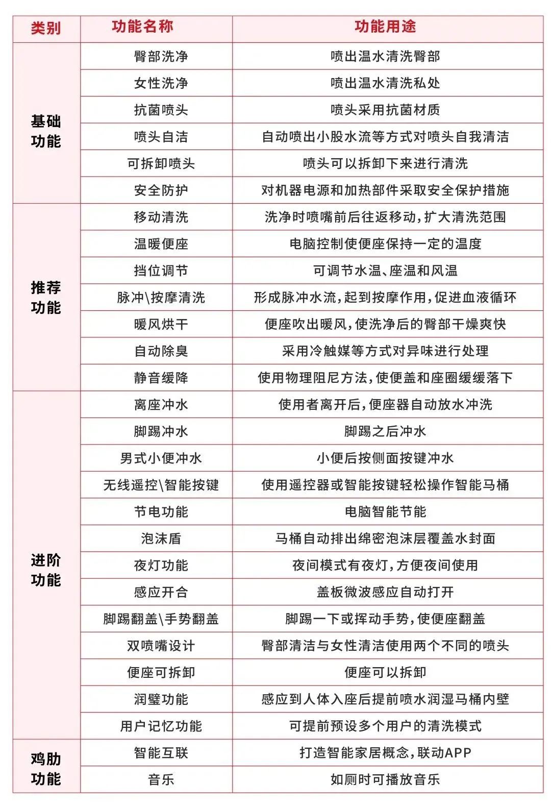 △ 目前市面上智能马桶的主要功能