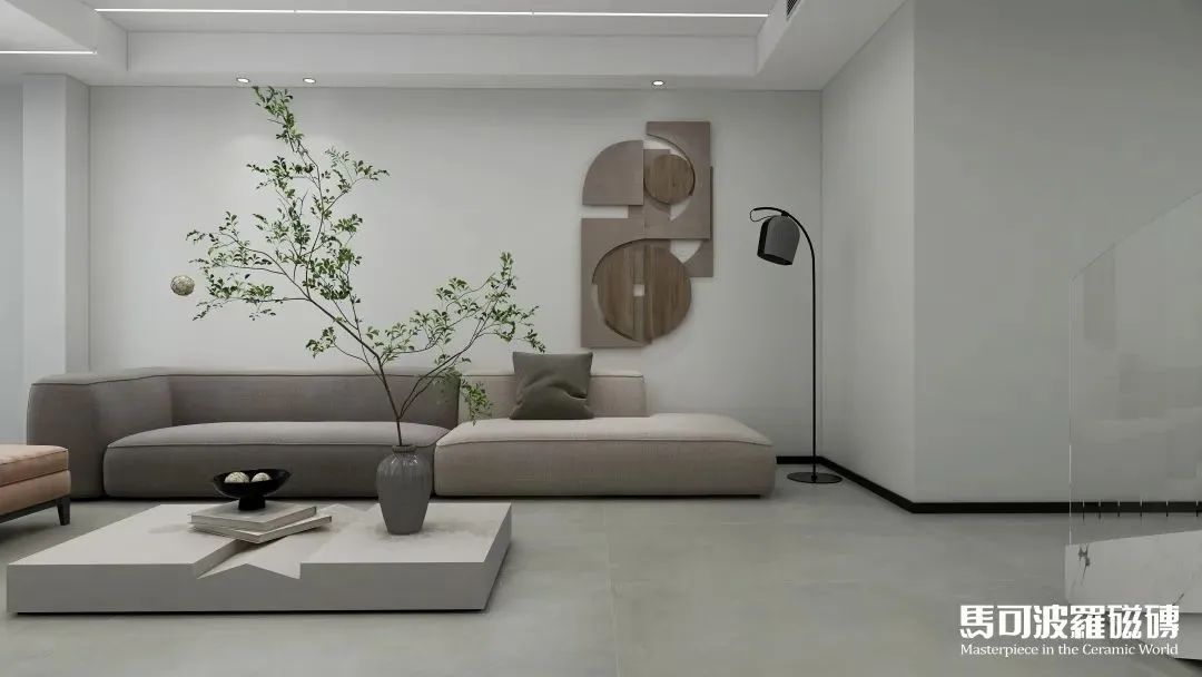 最近两年,陶瓷行业流行的质感系瓷砖正是为了打造侘寂风而生。质感系瓷砖采用柔光、哑光面设计,颜色以大地色、米色、高级灰、黑色为主,纹理选择图案简约的花色版面,如水泥、石材、金属、皮纹等,同时注重颜色、光感、工艺等细节。为了提升高级感,侘寂风空间应当适当的留白。但是白墙面过于孤单,选择高质感材质的装饰是必须的。质感砖注重表面工艺,打造肌理面,层次感更丰富,是侘寂风墙地装修的优质选材。