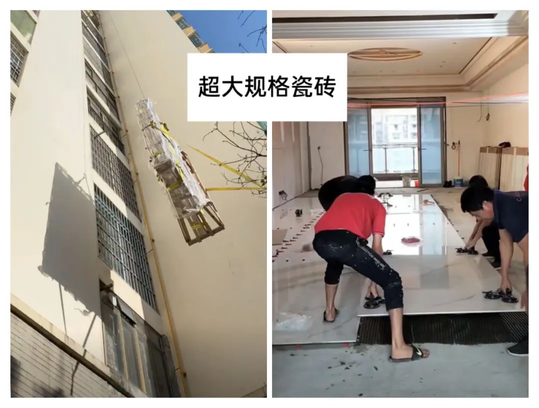 坑②:超大规格瓷砖   首先,选择900×1800㎜及以上规格的瓷砖,意味着家里的空间不能太小,否则涉及到切割的地方会造成很多损耗;其次,选择超大规格的瓷砖也要做好预算,因为贵的不仅仅是砖。如果瓷砖太大不能上电梯,请人工搬上楼或者叫吊机都是一笔不小的费用;一片大规格瓷砖要两个以上的师傅一起才能贴好,工费也多了;贴大规格瓷砖不好用普通的水泥砂浆,要用好一点的辅料,又增加了一笔费用……   买瓷砖想避免选错尺寸其实很简单,只需记住3句口诀:经济型性价比家装选800,小户型高品质家装选715,别墅或大平层家装选918。(注:800×800㎜简称800,750×1500㎜简称715,900×1800㎜简称918)