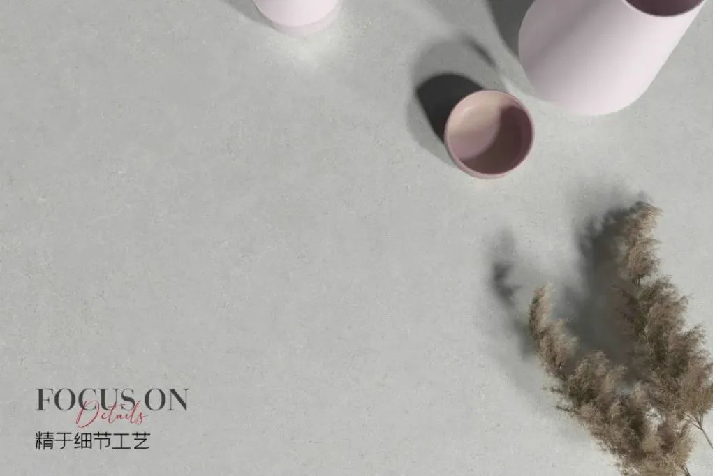 据悉,蛋壳面水泥系列采用了新一代微晶粒子,颗粒精细度较普通干粒提升60%,配合精准的1203°高温数控熔融工艺,再加上纤维精磨、海绵轻刷等工艺,使细节肌理的光感过渡细腻,能够有效软化水泥质感的冰冷坚硬,呈现出蛋壳般温暖柔和的细腻质感。