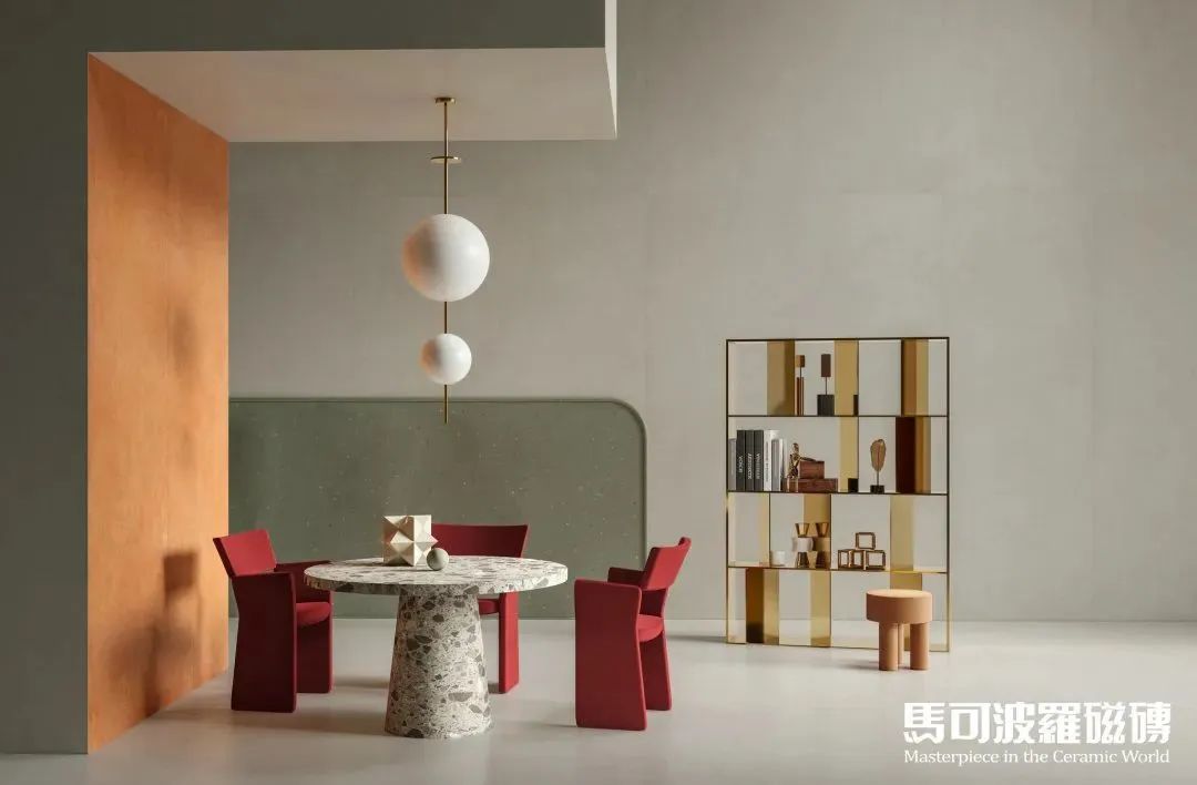 从冷色到素色,再到鲜色,马可波罗的e-stone4.0在以往黑白灰色系的基础上,增加了更多色调以及饱和度低的暖色,明暗结合,在吸睛的同时又充满了的高级感。从单色到复合色,马可波罗雅色系列包含更多色泽和纹理层次,实现了 deltə 5-70°的跃动,呈现出多维度的治愈色彩。