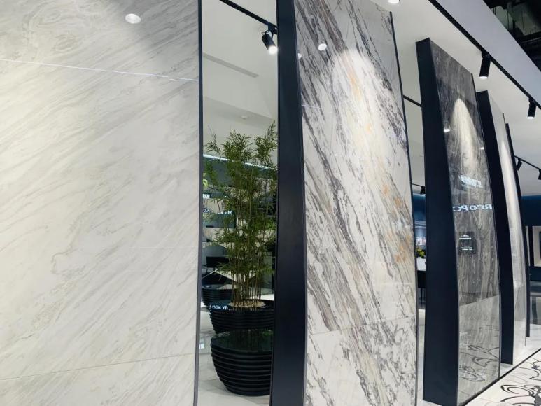 其中,6mm厚度坯体即表面,达到国家墙、地砖硬度标准,且大大减轻产品重量,更便于铺贴,轻薄有韧性,可用于地面、墙面、幕墙工程;9mm适中厚度既能“上墙下地”、室内室外“全覆盖”,更可应用于桌面、橱柜等创意铺贴,诠释“无界”之美;12mm厚度提供了更高的机械强度,专为桌子、厨柜台面和浴室台等水平面板而设计,甚至可以运用到建筑领域的外墙和内墙。